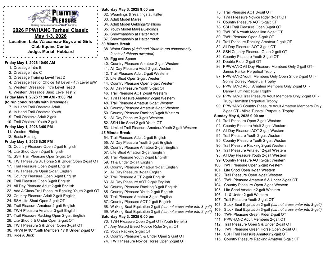 Experience the Joy of showing with PPWHANc may 1 -3 2026