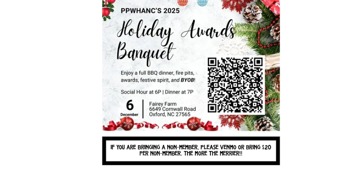 12/6/25 | 6649 Cornwall Road Oxford, NC 27565 | 6PM Social Hour, 7PM Dinner